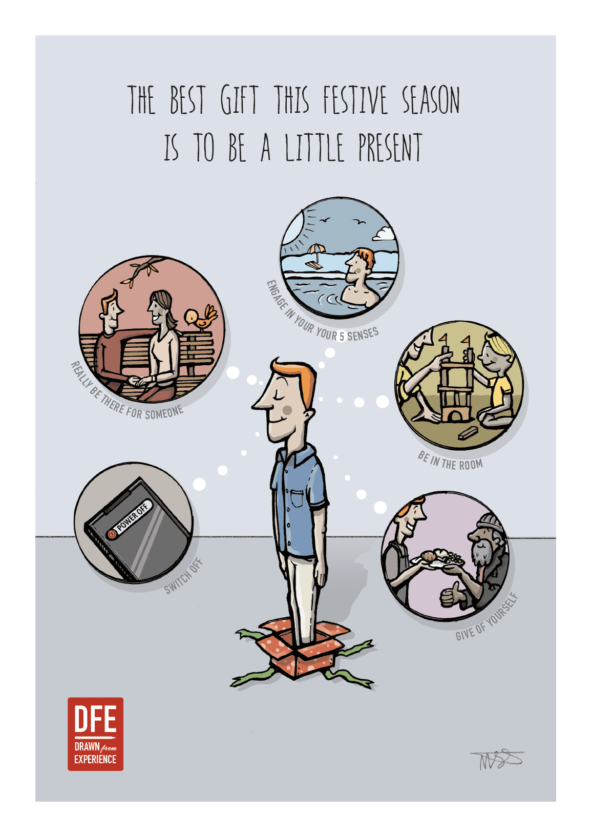 Recently, I received a beautiful hand-drawn Christmas card that offered a gentle reminder I’ve been sitting with ever since: perhaps the best gift we can offer is to be a little present.